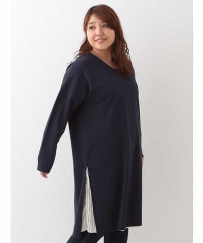 【大きいサイズ】サイドスリットワンピース ネイビー 1
