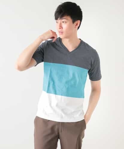◆配色感がポイント!汎用性の高い3段配色VネックTシャツ◆3段配色の半袖VネックTシャツ。襟元はVネックでジャケットやカーディガン等の羽織アイテムと相性の良い一枚。着やすい配色のモノトーン系、ネイビー系とカラ?トレンドのピンクを取り入れたインパクトのある配色がこだわりポイント。大きめな切り替えの為、夏の一枚着でも重宝する着用期間の長いアイテムです。※44・Sサイズと64・XXLサイズはWEB・一部限定店舗販売です。