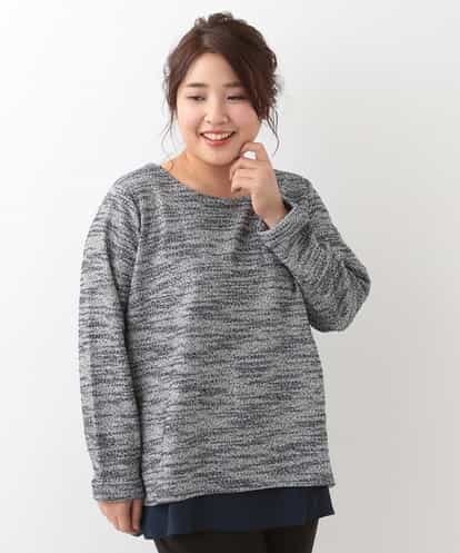 メランジ柄が表情感のあるレイヤードプルオーバーです。ラメをミックスしたエレガントなテキスタイルに、柔らかなシフォン素材をレイヤーしたデザインがアクセントになった一着です。ロールアップになった袖口や、後ろのスリットもポイントに。