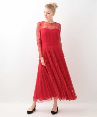 透け感のあるフラワーモチーフのレースを組み合わせたドレス。プリーツを施したボリュームのあるスカート部分に、衿ぐりにビジューをあしらったデザインがエレガントなドレッシーさを演出してくれる一着です。同じテキスタイルを使用した【VZHAD30460】もお薦めです。※バックファスナー、裏地付きmodel:H170 B81 W59 H88 着用サイズ:M