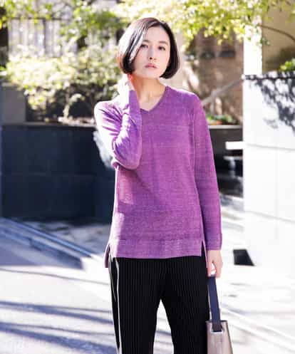 ■リネンベースのリラックスニット■ 表情感のあるミックスニットで編みたてたプルオーバー。 イタリアの紡績メーカー【PECCI社】のリネンミックス地で、 インポート糸らしいカラーリングとさわやかなシャリ感が シーズンムードを高めてくれる春らしい一枚です。 ラグランに切り替えたリラクシーなスリーブに Vネックでヌケ感がありながら女性らしい印象に。 サイドスリットを入れたヘムラインは前後差をつけ、 パンツ合わせがサラリと決まるレングスに仕上げました。 深みのあるピオニーで大人の女性に映えるパープル、 デニムライクなインディゴがカジュアルなネイビーの 魅力的な2色展開。 ※屋外での撮影は色味が多少異なる場合がございます。 商品の色味は、スタジオ撮影の画像をご参照ください。 model:H170 B81 W58 H87 着用サイズ:M(38)
