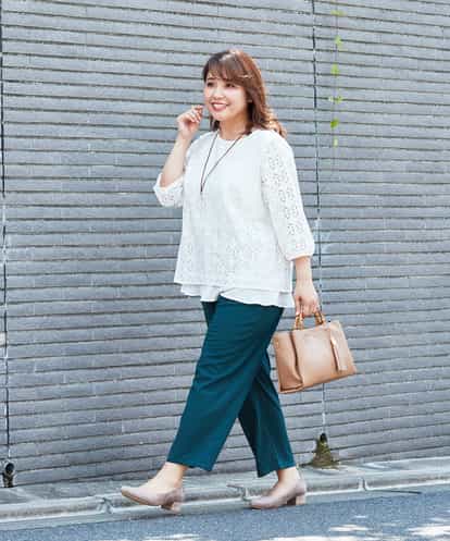 【洗濯機OK】【大きいサイズ】【通勤にもOK】裾フリル!総レースカットソー アイボリー 2