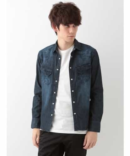 裏側をカモフラ柄でデザインしたダンガリーシャツ。一見、シンプルなデニムシャツのようで、さりげないカモフラ柄がアクセントを効かせます。定番のカジュアルな着こなしの中に他と差をつけたスタイルを楽しめます。model:H182 C92 W71 H90 着用サイズ:48