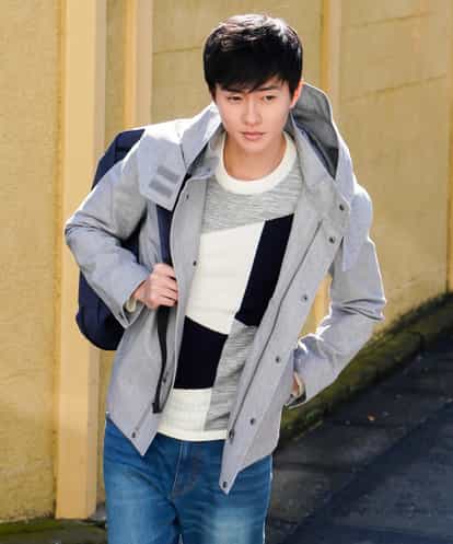 ◆フード脱着可能のボリュームネックフードブルゾン。◆ドビー織の表面感と縦横違う色で織りあげた独特のカラー感が特徴のフードブルゾン。メランジ感を出すことで見え方にこだわった素材を使用しています。フードは羽織るだけでサマになる様、立体感のあるデザインに仕上げています。素材・デザイン共にこだわった春におすすめのブルゾンです。