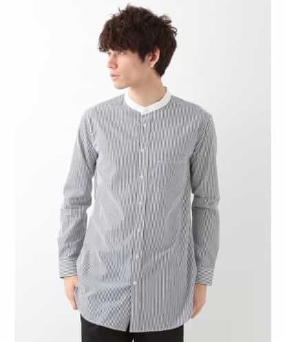 スタンドカラーロングシャツ ネイビー 48