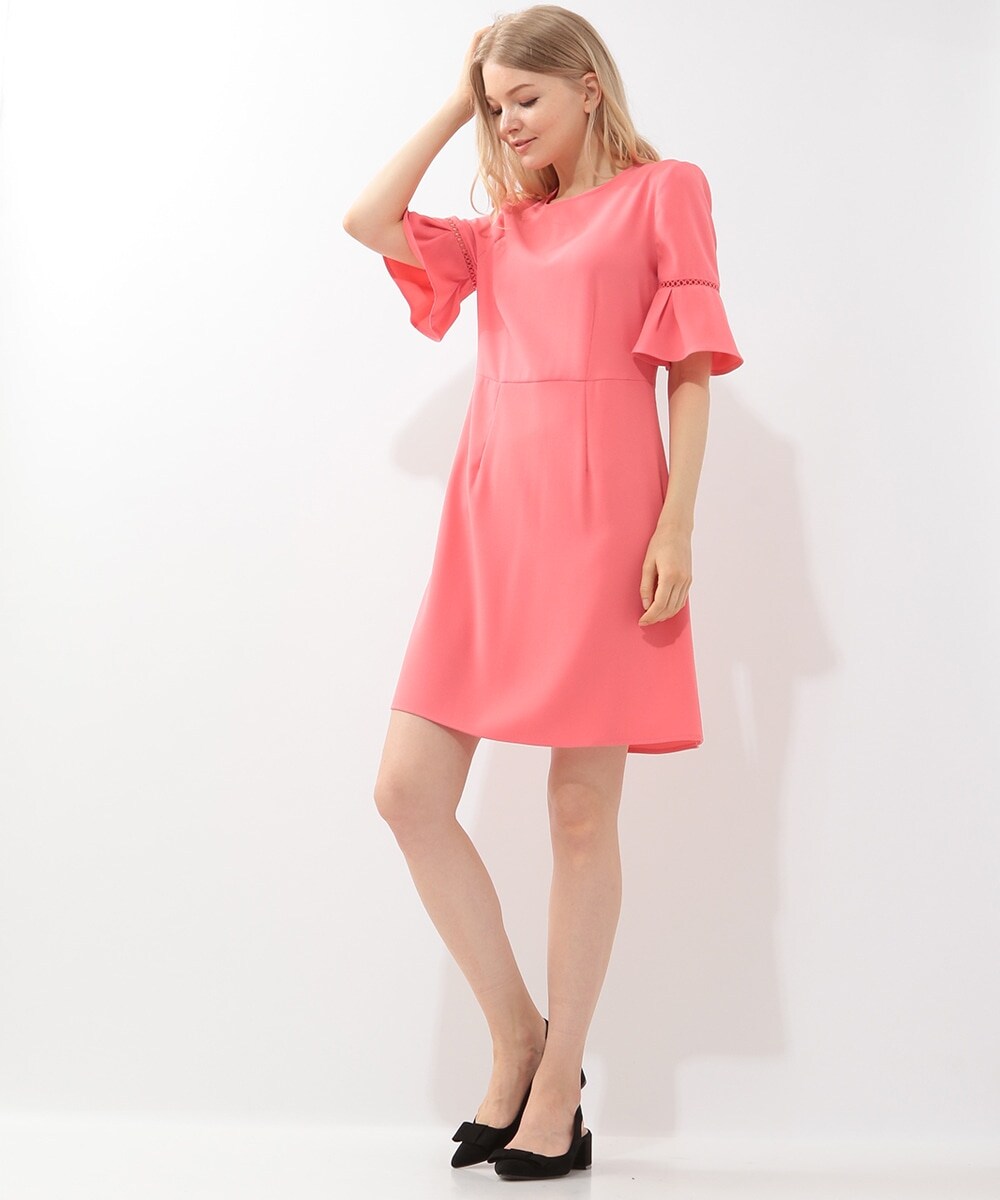 フレアスリーブワンピース ピンク 44