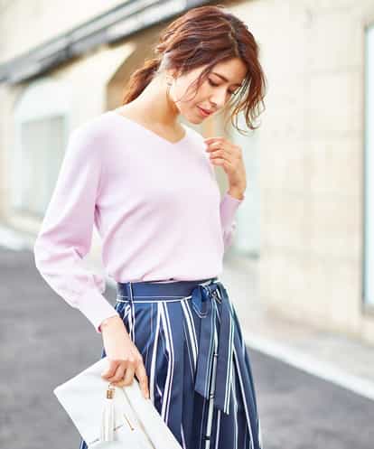◆誰でもサマになるVネックパフスリーブニット◆秋冬大人気のニットが春素材で登場。ストレッチ素材はそのままで、シャリ感を入れサラッとした風合いが特徴の春らしいプルオーバーです。カラーも春らしい明るい色を揃え、着合わせに重宝すること間違いなし!※34(XSサイズ)・42(XLサイズ)はWEB・一部限定店舗での販売です。