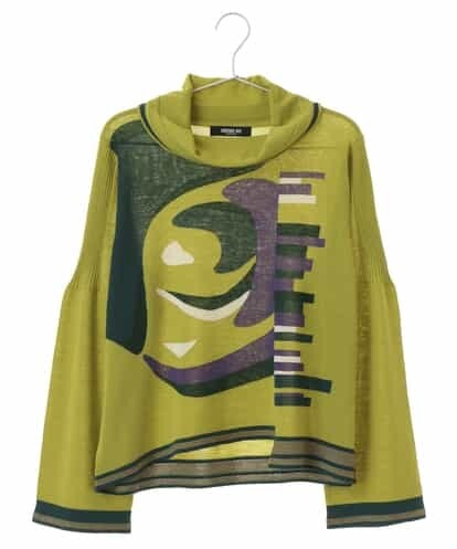 インターシャでバラをグラフィカルに演出したニットプルオーバー。今年らしくイレギュラーヘムや袖コンシャス、オフタートルネックなどデザインディティールを沢山盛り込んだ一着です。ニットならではの色鮮やかな雰囲気が上品な仕上がりになっています。