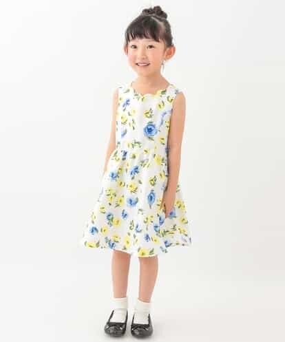 ◆鮮やかな花柄がフォーマルなシーンにぴったりの1枚◆鮮やかなイエローとブルーの花柄が春らしいワンピースです。発表会などのフォーマル・上品なシーンにぴったりです。カーディガンやジャケットとの華やかなスタイリングがおすすめです。※100サイズはWEB・一部店舗限定販売です。同じデザインの140〜160サイズございます。