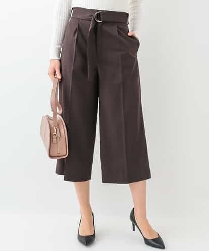 【洗濯機で洗える】サッシュベルト付きワイドパンツ ダークブラウン 40