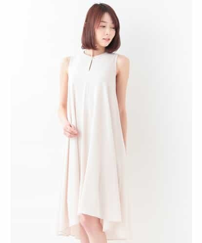 たっぷりとドレープ感のあるテキスタイルで仕立てた、動きのあるデザインドレス。前後の丈の長さのバランスや、ドレープが作り出すフレアが非常に美しいシルエットを演出してくれます。フロントのメタルパーツが光る、高級感溢れる一着です。※インナードレス付きmodel:H170 B80 W58 H81 着用サイズ:M