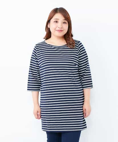 【洗える】【大きいサイズ】定番!ボーダーロング丈カットソー ネイビー 1