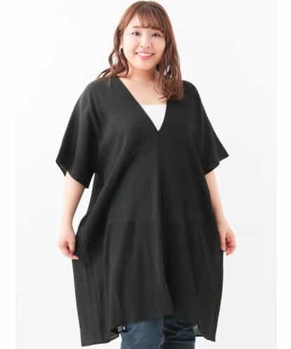 【人気タレント着用商品】全3色【大きいサイズ】バックポイント深Vネックチュニックワンピース ブラック 1