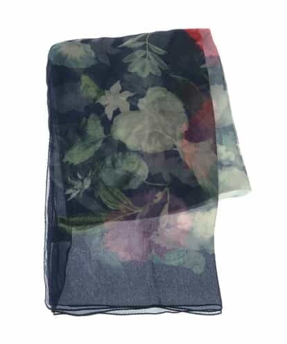 【シルク100%】シルククレープボタニカルストール ネイビー 9