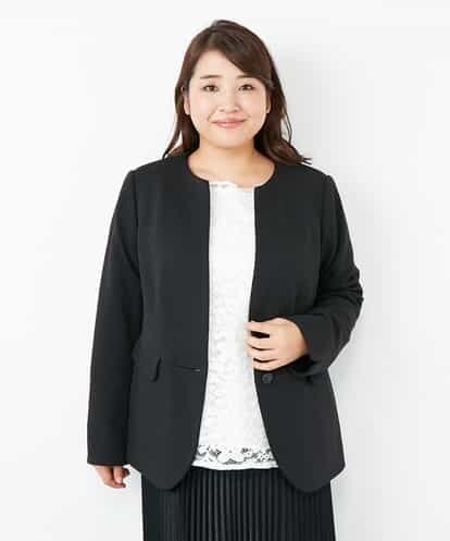【セットアップ】【大きいサイズ】ひとつボタンでしっかり印象!ノーカラージャケット ブラック 13