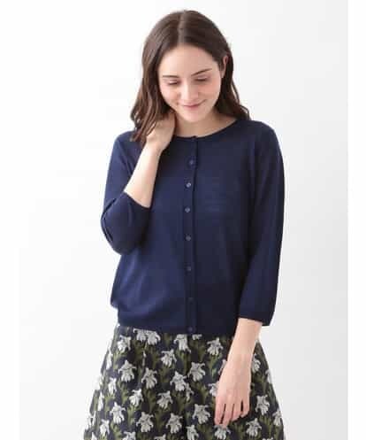 ウールの中でも最高級とされるメリノウールを使用したTARA JARMONのアイコンカーディガン。 毛が細く、柔らかくてしなやかな肌触りが特徴ですが、機能性にも優れており、吸湿と除湿性に優れ冬は暖かく、暑いときは涼しく過ごせます。チクチクしない、静電気が起きにくく、ほこりや糸くずが付きにくい、天然の抗菌・防臭性に優れ臭くなりにくいなどの嬉しい機能を沢山併せ持ったウール界のスーパースターです。 そのメリノの糸を限りなく細くハイゲージで編みあげ、表面が綺麗に整ったシンプルで上品なカーディガン。こだわり抜いた糸は質のちがいを感じさせてくれる逸品です。 フロントボタンに刻印されたブランドロゴがさりげないお洒落を演出してくれています。多彩なカラーバリエーションからお好みのお色をお選びいただけます。model:H165 B79 W60 H88 着用サイズ:38