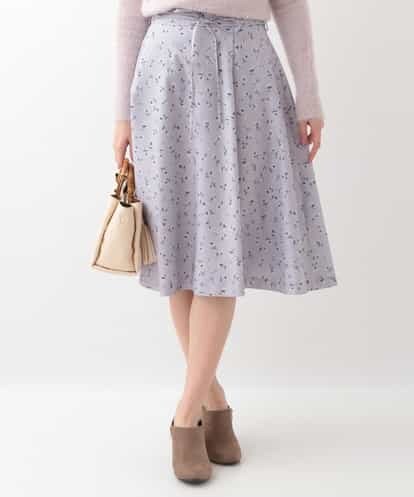 【春まで使える】ベルトリボン付きフラワープリントスカート ラベンダー 40