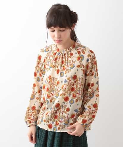 ボタニカル調なプリントを施したウール素材のブラウス。首周りに寄せたギャザーデザインで柔らかい印象のあるシルエットに仕上がっています。華やかなプリント柄でコーディネートのアクセントになってくれる、主役級のアイテムです。同ラインでNew Year Eve 総柄Aラインワンピース【GJEAE06280】の作りもございます。model:H167 B80 W58 H87 着用サイズ:M