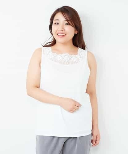 【店頭人気】【大きいサイズ】定番!襟ぐりレースタンクトップ アイボリー 1