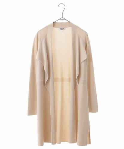 これからの季節に活躍する、しなやかなレーヨン混の糸で編み立てたロングカーディガン。すっきりとしたシルエットで流れるようなフレアー衿がいっそうエレガントな雰囲気。白のラインがさわやかなアクセントに。同素材のプルオーバーや、ガウチョとのセットアップがおススメ!【RBFDD08240】や【RBGDD07330】と合わせて、今年トレンドのニットアップコーディネイトもお薦めです。model:H167 B80 W59 H85 着用サイズ:M