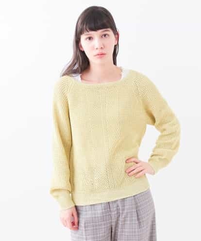 ボートネックボリュームスリーブニット ライトイエロー 38