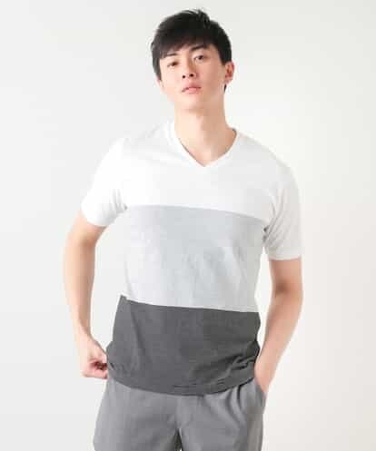 ◆配色感がポイント!汎用性の高い3段配色VネックTシャツ◆3段配色の半袖VネックTシャツ。襟元はVネックでジャケットやカーディガン等の羽織アイテムと相性の良い一枚。着やすい配色のモノトーン系、ネイビー系とカラ?トレンドのピンクを取り入れたインパクトのある配色がこだわりポイント。大きめな切り替えの為、夏の一枚着でも重宝する着用期間の長いアイテムです。※44・Sサイズと64・XXLサイズはWEB・一部限定店舗販売です。