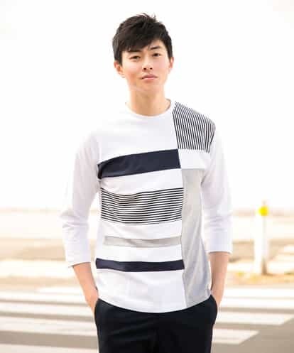 ◆ボーダー柄を取り入れたグラフィカルな切替七分袖カットソー。◆部分的に異なる素材をドッキングした切り替え七分袖カットソー。グラフィカルな切り替えがポイントで、ディティールにこだわった一枚。部分的にボーダー柄を取り入れることにより、インパクトのあるデザインに仕上げました。今期トレンドのディテールのため、着用するだけでサマになるアイテムです。※44・Sサイズと61・XXLサイズはWEB・一部限定店舗販売です。