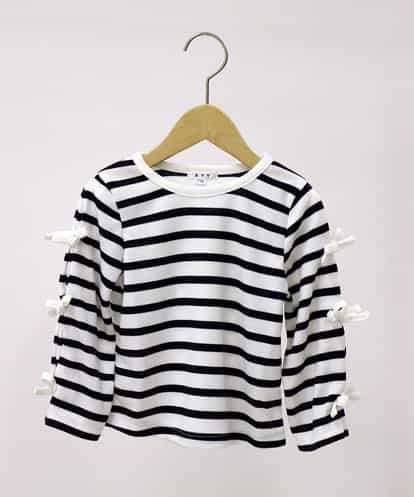 [160]袖リボンボーダーカットソー[WEB限定サイズ] ネイビー 160