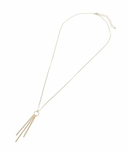 細メタルバーが3つ付いたロングネックレス。胸元で揺れるメタルバーが女性のエレガントさを演出。クールなイメージになりがちなモチーフも揺れ動くデザインが、大人の女性のラグジュアリー感をプラスしてくれています。