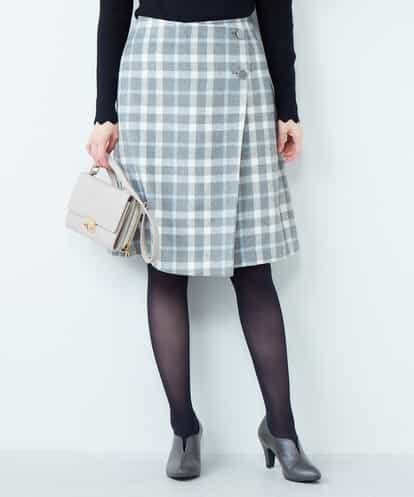 ラップ風チェックスカート[WEB限定サイズ] ライトグレー 36