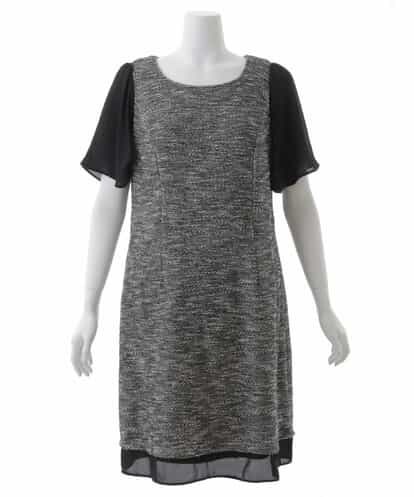 【大きいサイズ】カットツイード袖シフォンワンピース ダークグレー 15