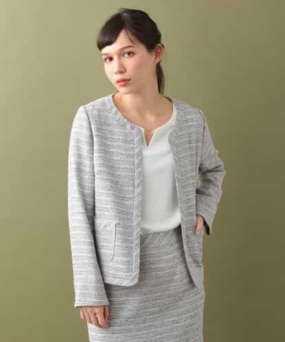 [セットアップ対応]ノーカラーラメツイードジャケット ライトグレー 38