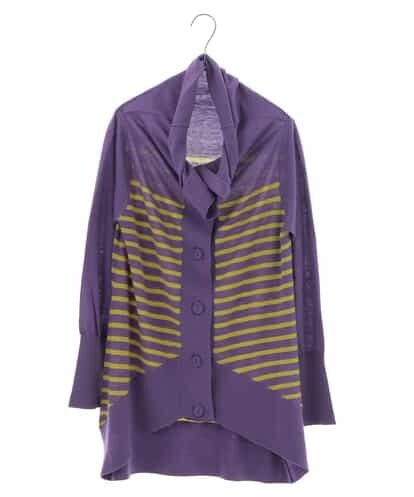 【洗える】デザインボーダーニットジャケット ダークパープル 9