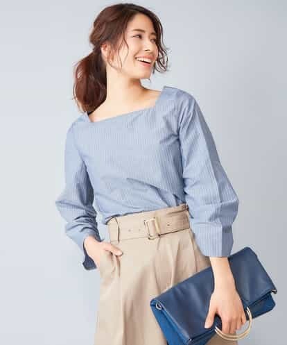 ◆ドロストスリーブがポイント◆シンプルなシルエットながらもストライプがコーディネートの主役になってくれる1着です。肩のボーダー使いもデザインのアクセントに。袖口はシャーリングでタックアップ出来る袖コンブラウスです。※34(XSサイズ)・42(XLサイズ)はWEB・一部限定店舗での販売です。