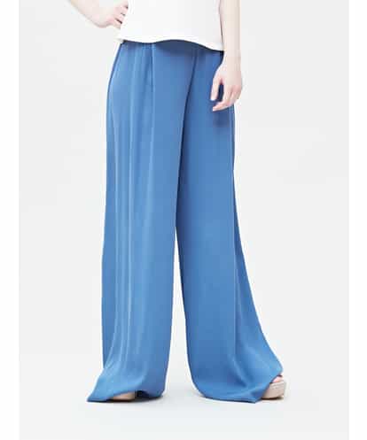 ドレープ感が美しいシルエットのパンツ。素材にシルクが入っていることで絶妙な光沢感が生まれ、静謐で繊細な印象に。ウエストラインまですっきりと見えるつくりはシビラのこだわりが詰まった美しい1点です。model:H170 B80 W58 H81