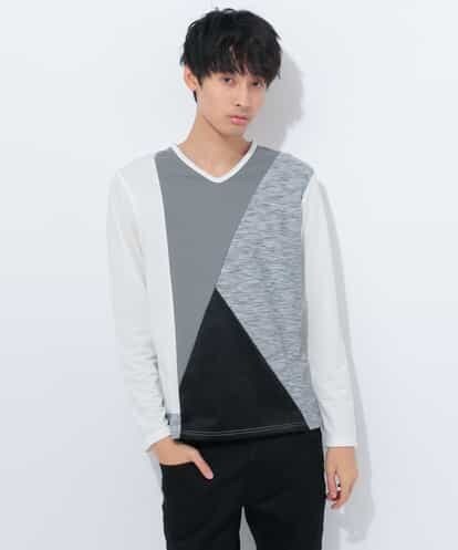 様々なカラーとテクスチャの違う素材を組み合わせたデザインカットソー。風合いのある色味と着回しの利くVネックがコーディネイトに個性をしっかりとプラスしてくれる一着です。model:H185 C81 W66 H91 着用サイズ:48