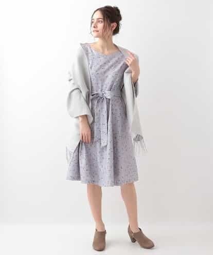 【春まで使える】ベルトリボン付きフラワープリントワンピース ラベンダー 40