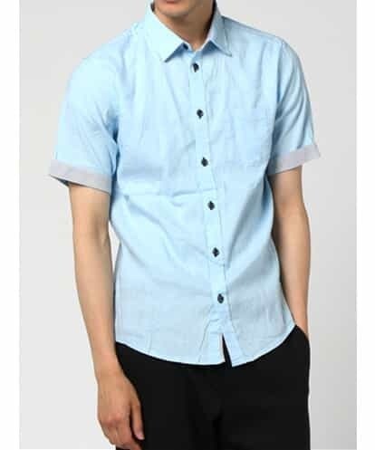 ポイントストライプリネンシャツ ライトブルー 51