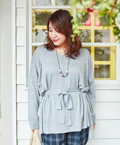 【テレビ掲載】【大きいサイズ】【バランスニット】嬉しい細見え!ウエストリボンニットチュニック グレー 1