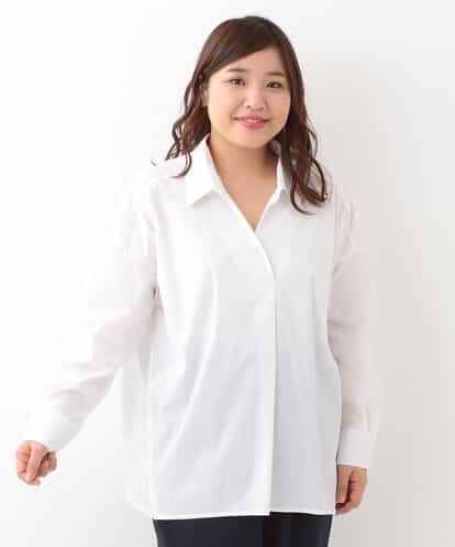 【大きいサイズ】スキッパー&ドロップショルダーシャツ ホワイト 13