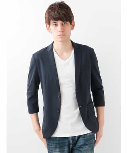 薄手のストレッチのきいた春や夏におすすめしたいジャケットです。7分袖なので涼し気ですが、さらにロールアップしてアクセントを付けるのもおすすめです。襟のないカットソーやTシャツをシンプルに合わせてオシャレに着こなして。model:H182 C92 W71 H90 着用サイズ:L