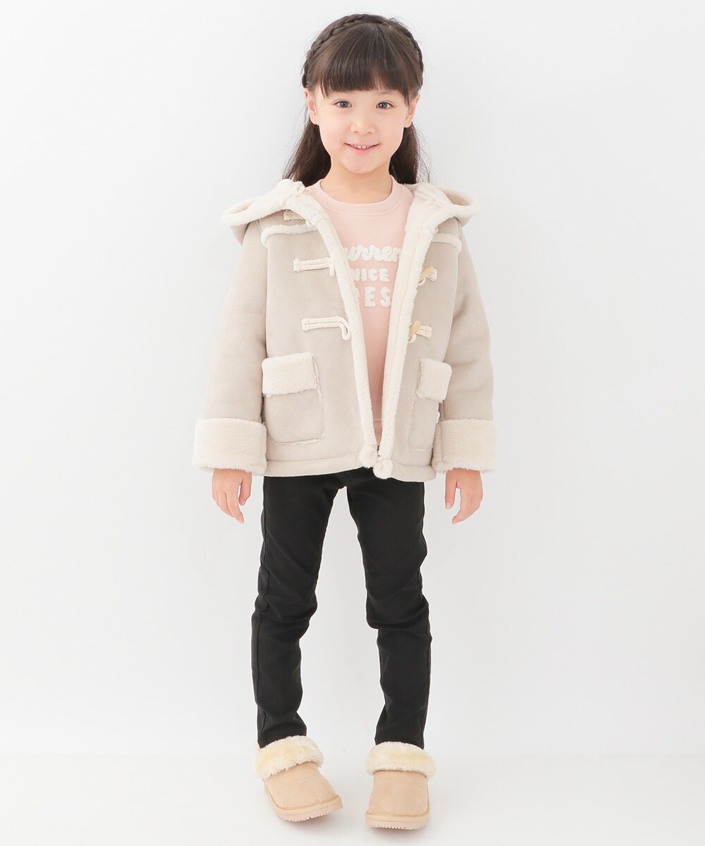 ◆カジュアルなスタイリングにピッタリなダッフルコート◆取り入れやすい優しい印象のカラー展開にダッフルデザインがカジュアルなスタイリングにピッタリです。裾・ポケット部分の切替テクニックがポイントです。※100サイズはWEB・一部店舗限定販売です。同じデザインの140〜160サイズございます。