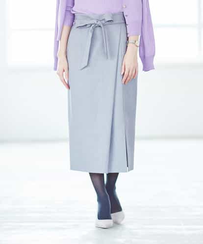 【洗濯機で洗える】リボンサッシュペンシルスカート グレー 38