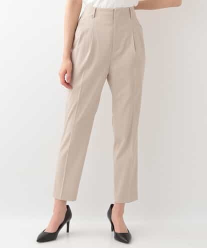 微光沢の滑らかな風合いが美しいウエストタックテーパードパンツ。ヒップ周りをゆったりと、足首に向かってすっきりとさせたシルエットは美しい履きこなしを提案します。センタープレスを施し、きちんと感もプラス。フォーマルなシーンやキレイめスタイルにも好相性の一本です。バックウエストがゴム使用になっている為、穿き心地楽ちん。※裏地付き、ご自宅で手洗いが可能です。同テキスタイルで仕立てたスカート【EJHDD08089】ジャケット【EJJDD08149】【EJJDD09149】とのセットアップもオススメです。model:H171 B80 W60 H86 着用サイズ:M
