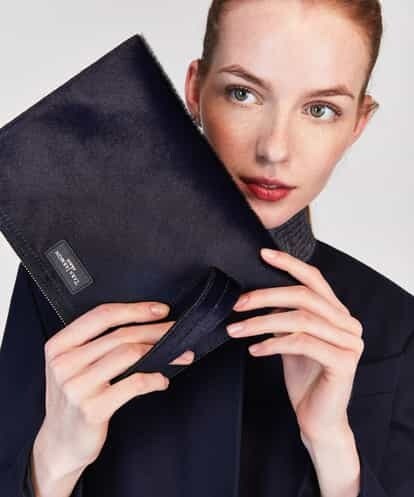 ハラコの高級感溢れる風合いに、レザーの大きな持ち手がインパクトのあるフラットバッグ。シックな色合いの中に素材の上質さがしっかりと大人の雰囲気を漂わせるアイテムです。シンプルなコーディネイトにプラスするだけで、スタイリングをワンランクアップさせてくれます。