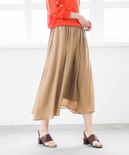 ■大人っぽく着こなすキレイ色スカンツ■ ボリュームたっぷりの分量感と太めのウエスト切替えで旬な雰囲気のスカート見えパンツ『スカンツ』。熱で光沢を出すチンツ加工を施し、上品な光沢感となめらかな肌触りが着心地の良い1枚です。歩くと軽やかに揺れるスカンツはトップスを選ばないのも嬉しい。お仕事からお休みの日のカジュアルスタイルまで、シーンを問わず着回して。※屋外での撮影は色味が多少異なる場合がございます。商品の色味は、スタジオ撮影の画像をご参照ください。 ※サンプルでの撮影となるため、実際にお届けする商品と仕様やサイズが異なる場合がございます。