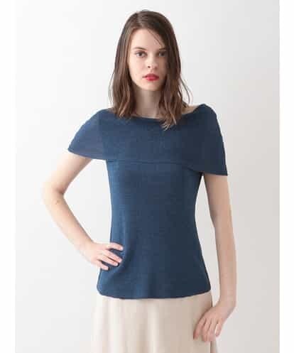 季節感のあるリネンと柔らかなレーヨンの混紡素材が着心地の良いニットトップス。ノースリーブにワイドなオフショルダーの組み合わせが素敵な、大人のノースリーブアイテムに仕上がっています。model:H170 B80 W58 H81 着用サイズ:M