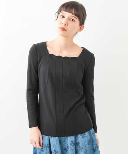 コットンモダール スムース スカラップネックカットソー ブラック 40