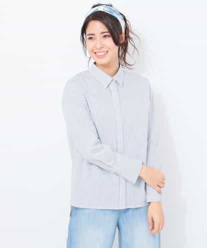 ◆ロングカフスがポイントの大人シャツ◆ロングカフスがポイントの抜き衿シャツです。程よいサイズ感で1枚での着用はもちろんキャミやワンピースやビスチェなどを重ね着しても素敵♪スッキリとした印象。