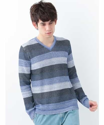 パネルボーダーニット ネイビー 46